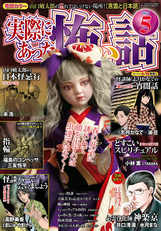【心霊浄化師 神楽京/原作・井口清満 漫画・水月まな】【どすこいスピリチュアル/漫画・小林薫 原案・TANAKA】【怪談師・志月かなでの宵闇話/原作・志月かなで 漫画・油豆】【怪談バーで会いましょう/漫画・高野美香 原作・まにゅ・やまげら】【怪談王/原作・福島のゴンベッサ 漫画・三友恒平】【関西異聞[口にしてはいけない怖い話]/漫画・町田ジュン 原作・桜木ピロコ】【つるんづ怪談/つるんづマリー】【心の中の黒い雲を流してみた/伊藤ロイ】【桜の神様/漫画・空路 原作・橘明来】【立原美幸の心霊エッセイ/金子裕】【ちょっぴリチュアルDAYS/若尾はるか】【オルゴール人形の怪/佐々木マリテ】【山口敏太郎の日本怪忌行/漫画・未浩 原作・山口敏太郎】 ※電子版ではプレゼント、アンケートなどへの応募はできません。予めご了承ください。