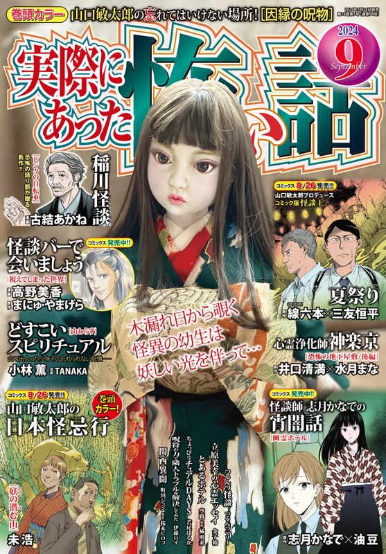 【山口敏太郎の日本怪忌行/漫画・末浩 原作・山口敏太郎】【稲川怪談[ピンクの自転車]/漫画・古結あかね 原作・稲川淳二】【怪談バーで会いましょう[視えてしまった世界] /漫画・高野美香 原案・まにゅ・やまげら】【怪談師・志月かなでの宵闇話/原作・志月かなで 漫画・油豆】【どすこいスピリチュアル[山わらす]/漫画・小林薫 原案・TANAKA】【関西異聞[口にしてはいけない怖い話]/漫画・町田ジュン 原作・桜木ピロコ】【つるんづ怪談/つるんづマリー】【とあるホテル/漫画・空路 原作・橘 明来】【立原美幸の心霊エッセイ/金子裕】【ちょっぴリチュアルDAYS/若尾はるか】【怪談王[夏祭り]/漫画・三友恒平 原作・線六本】【呪符の力で隣人トラブルを解決してみた/伊藤ロイ】【心霊浄化師 神楽京/原作・井口清満 漫画・水月まな】