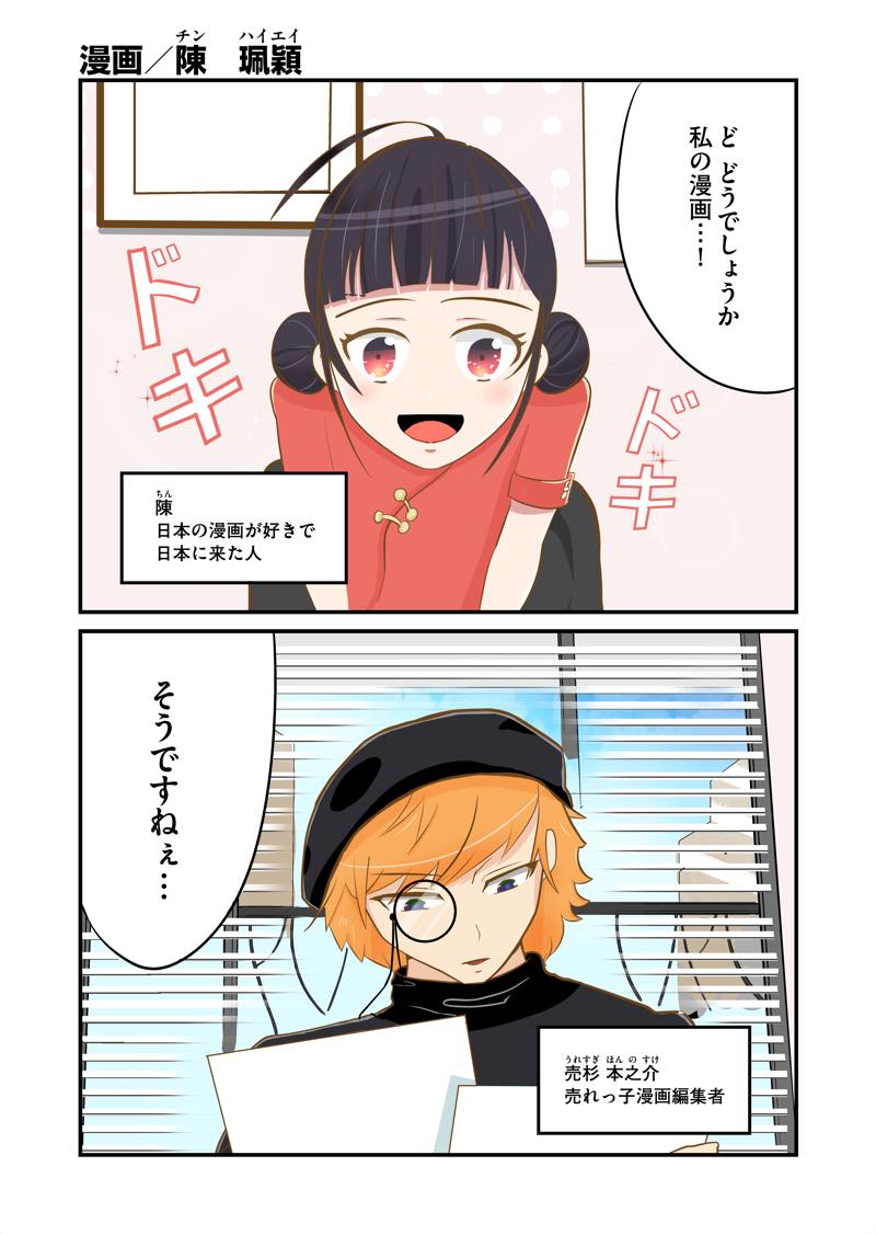 中国から来た漫画家志望の留学生・陳さんが、伝説の編集者・売杉からにマンガでついて学びます!