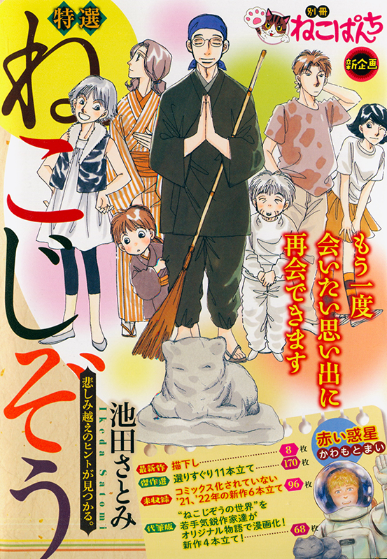 ねこじぞうにお参りすると会いたかった猫に会えるという…人間と猫との絆が描かれたじんわり泣ける感動ストーリー「ねこじぞう」の傑作選と他作家によるスピンオフ作品も掲載!