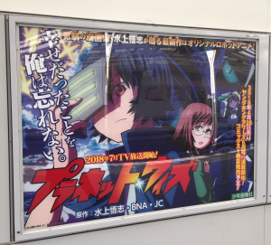 今夏アニメ放送開始&ヤングキングアワーズ2018年6月号漫画連載がスタートする、『プラネット・ウィズ』(アニメ原作・漫画:水上悟志)が、JR水道橋駅ホームのサインボードに登場しました!